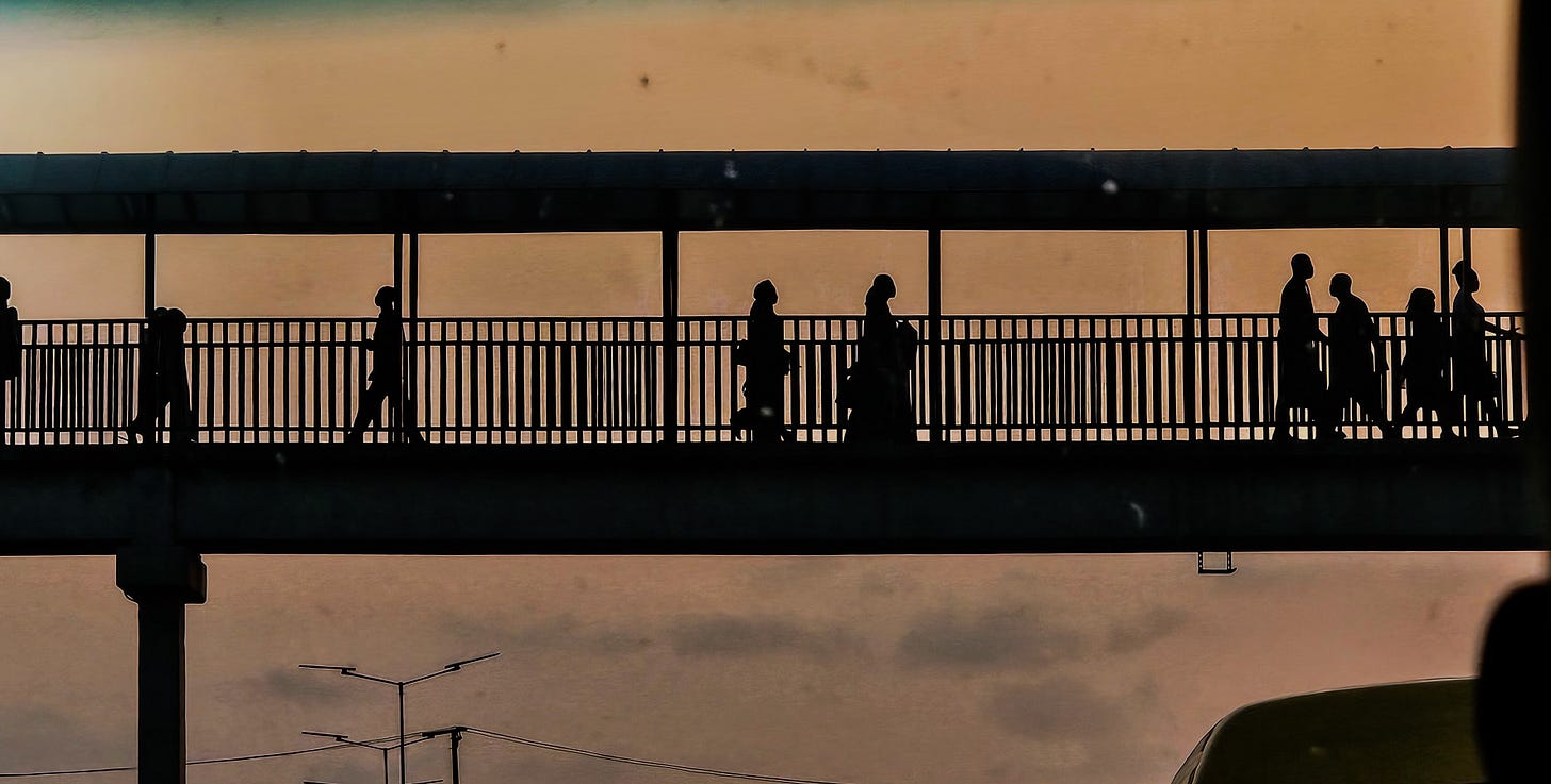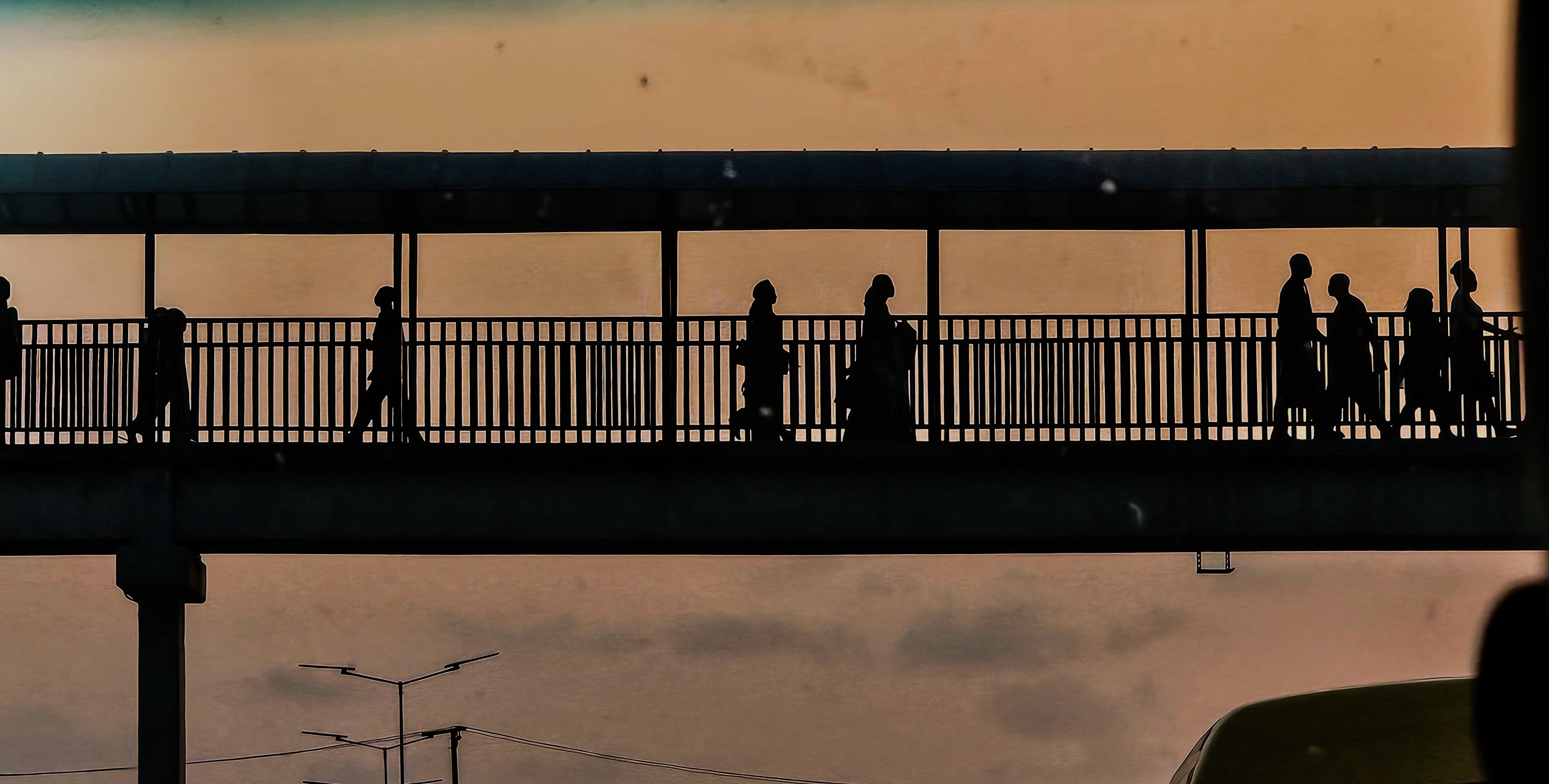 So yeah, for a moment we share a bridge, same sky, same evening, same direction, then we disappear into our separate interesting yet insignificant stories.